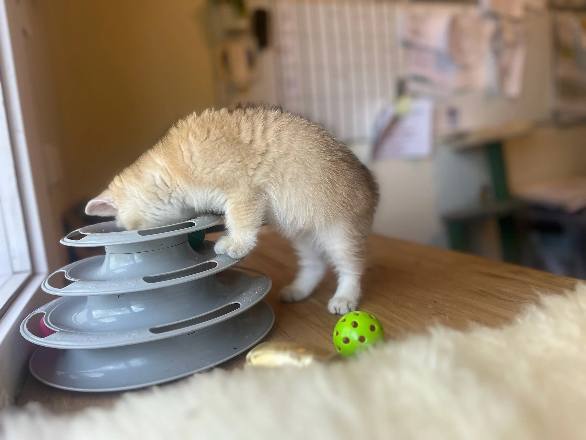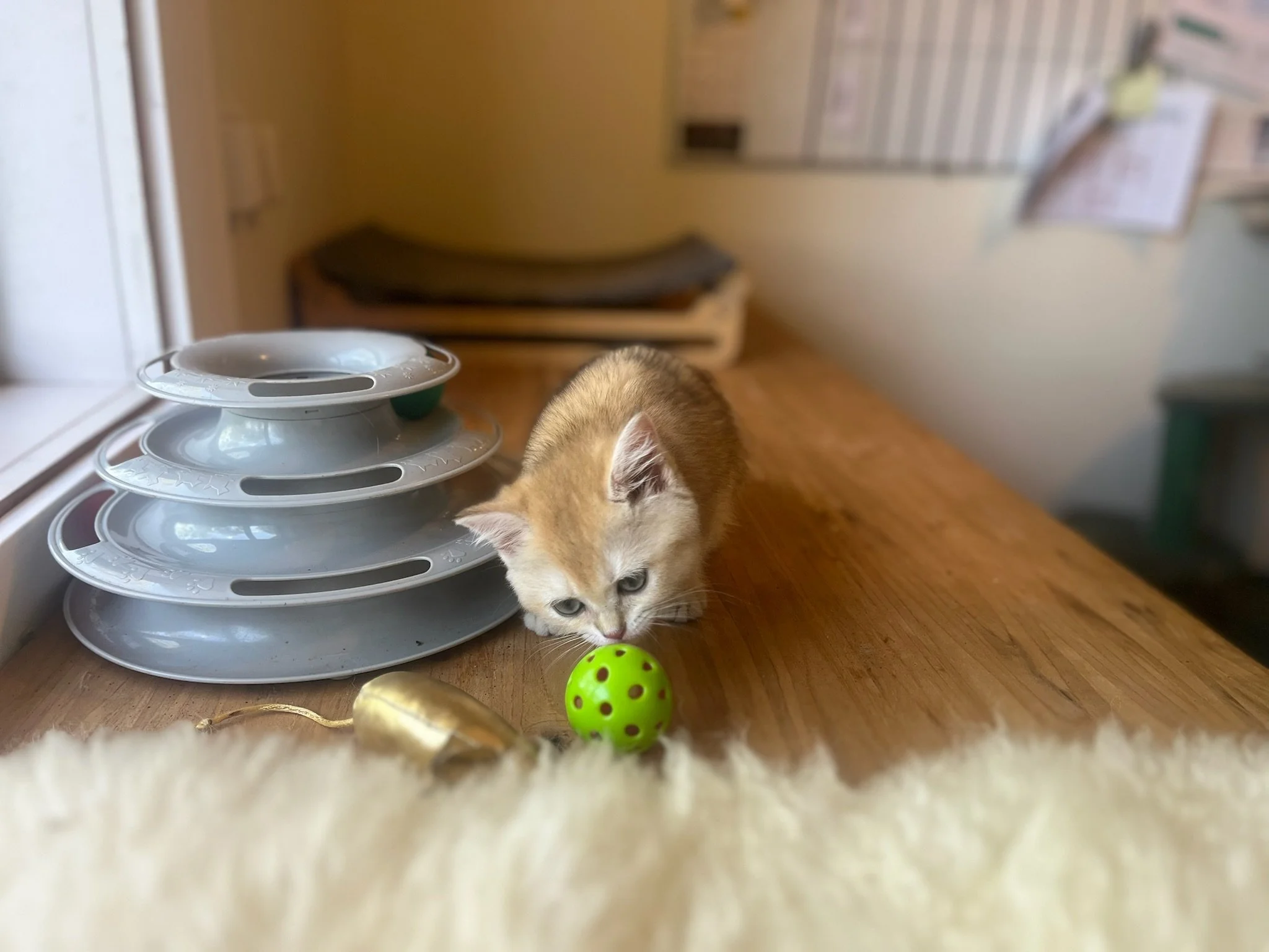 Imogen is a classy girl—delicate, kind, and caring. She’s the one who sets an example for others on how to use the litter box and nap in a designated cat bed. A calm and well-balanced kitten.